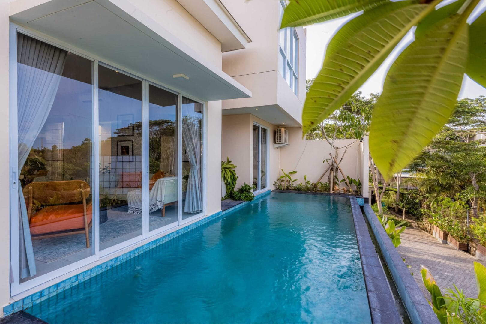 The DKamboja Villa Nusa Dua is a brand new villa with sleek architectural lines, spacious interiors, and high-end furnishings, every corner exudes an aura of refinement and luxury. Rest, shot moments and even enjoy a fully equipped work-from-home space. Experience the epitome of tropical living with our seamless indoor-outdoor spaces. Adorned with lush gardens, and a private pool.